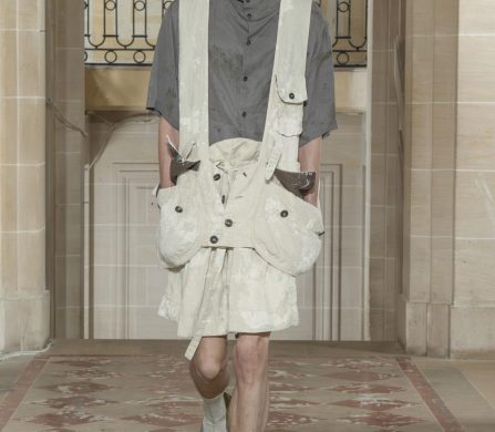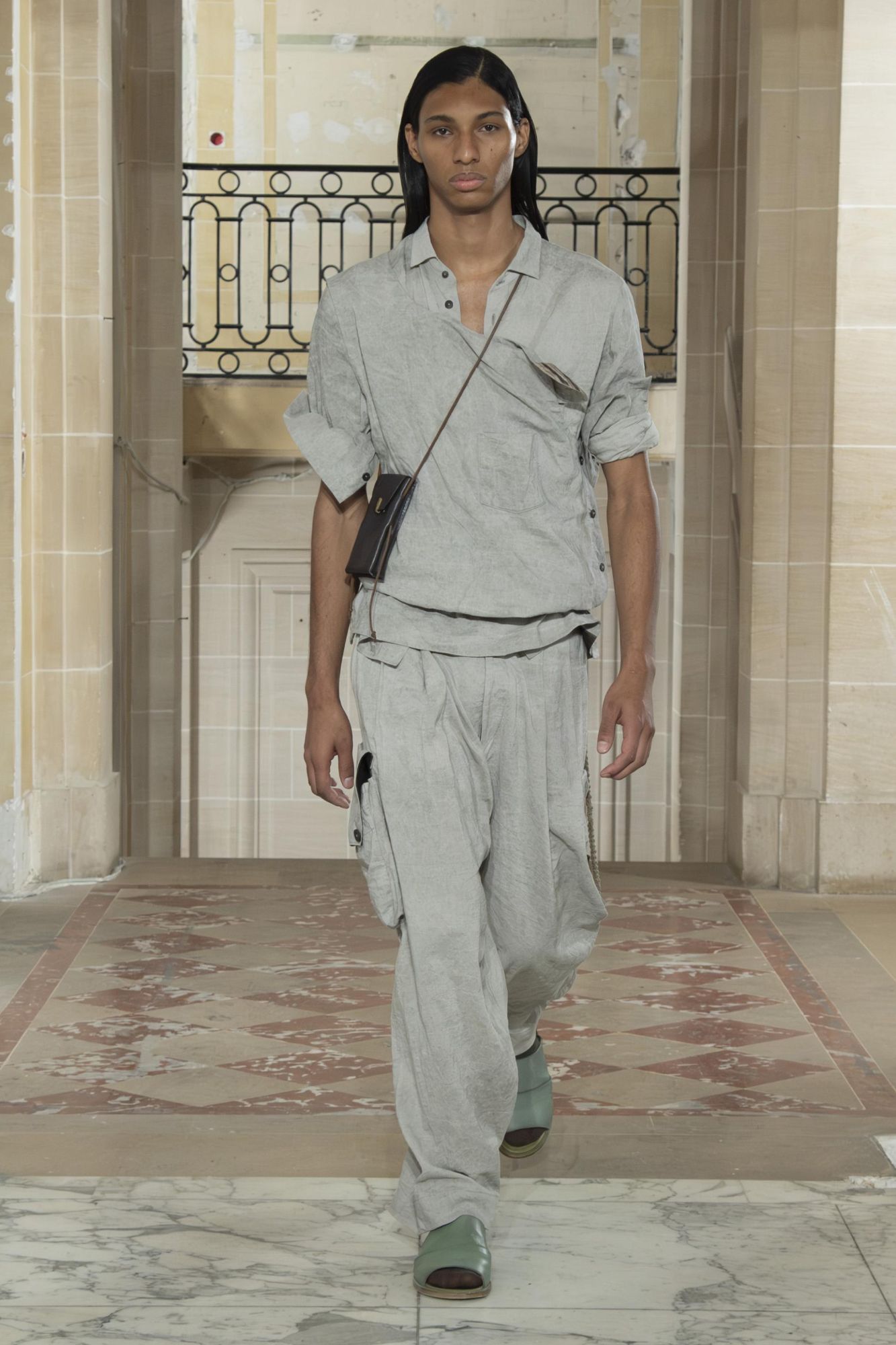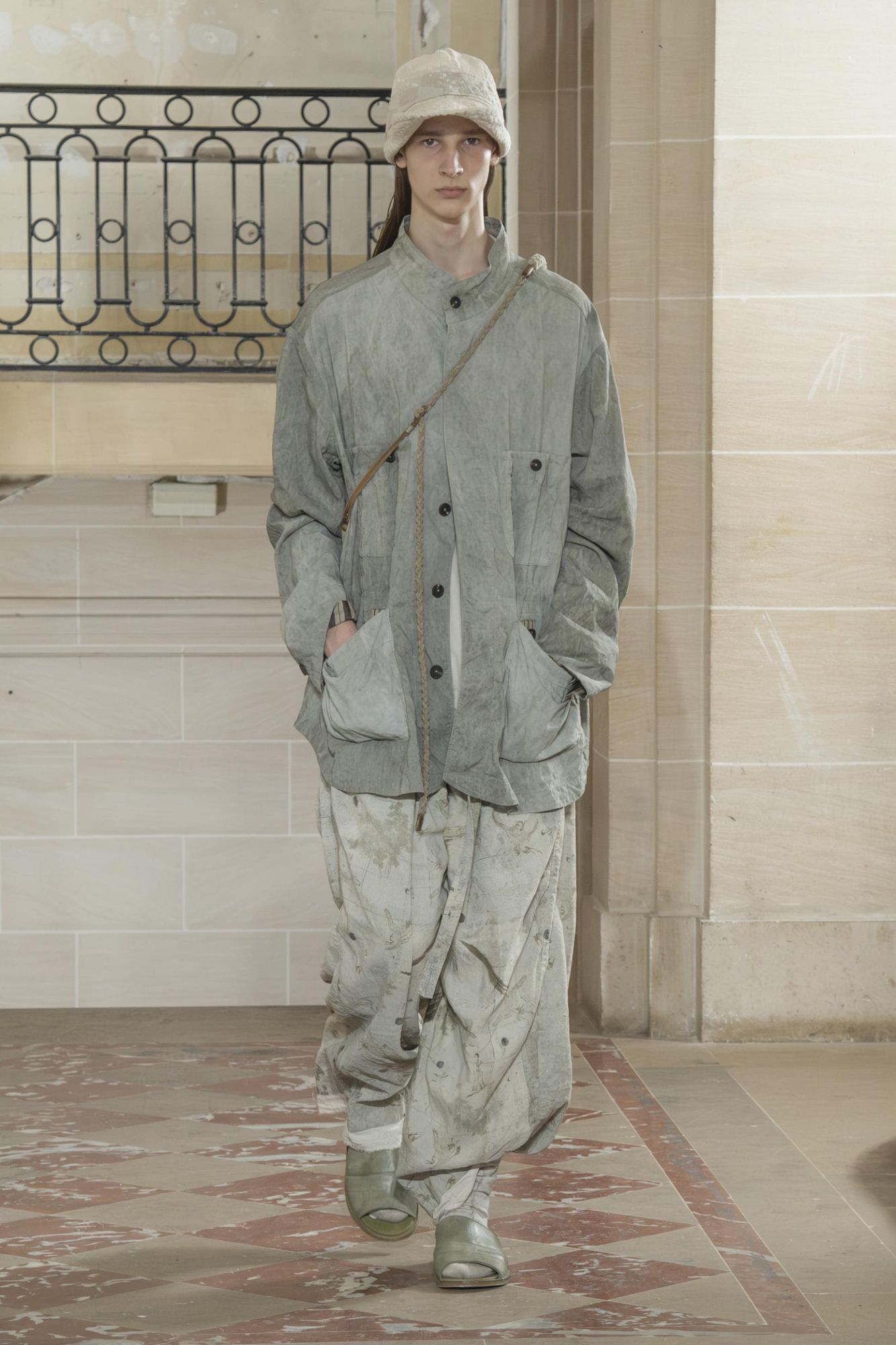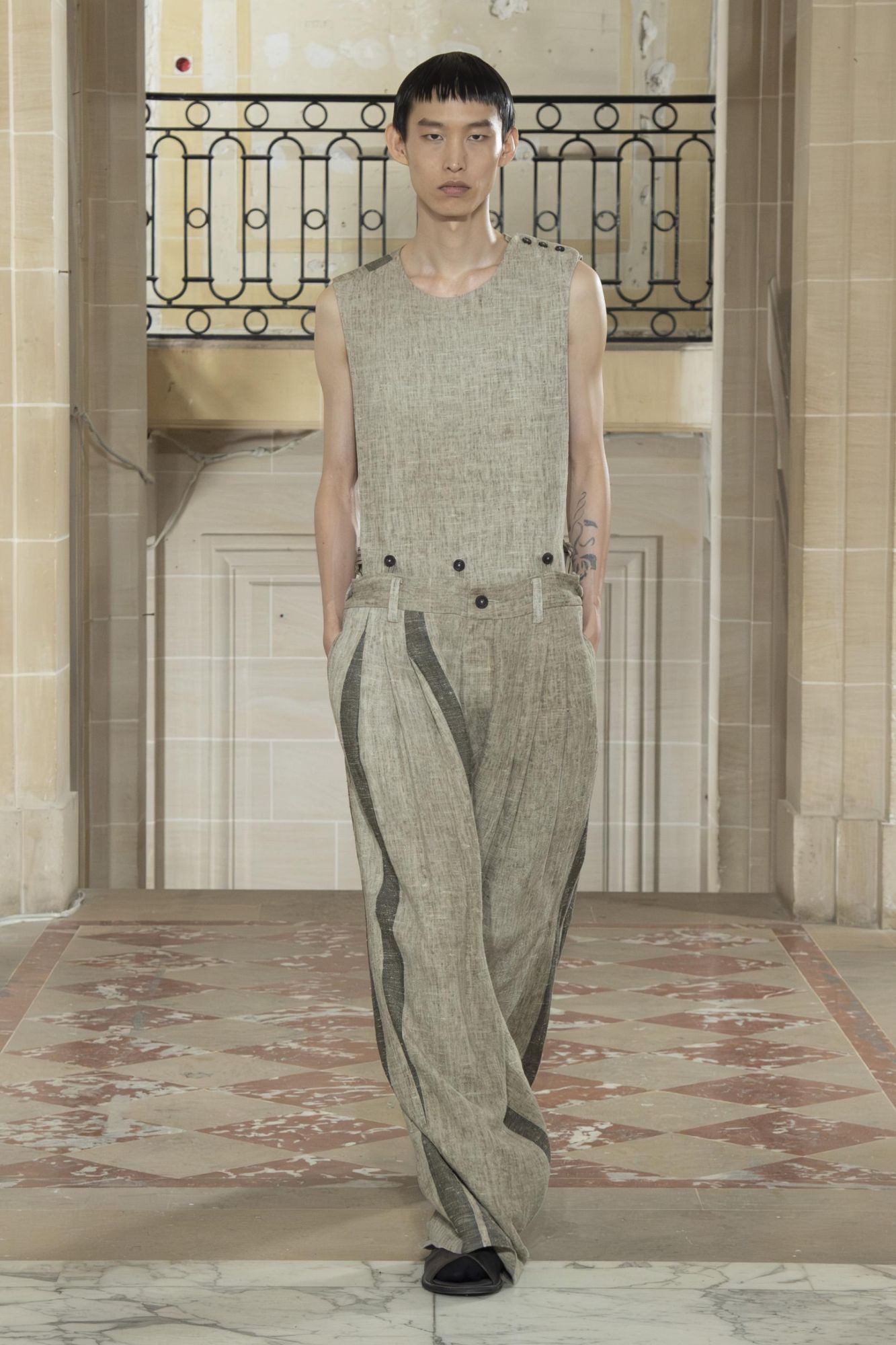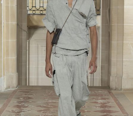 Still, Chen’s hand remains unmistakable. Although asymmetry takes a backseat this season, experimentation surfaces elsewhere, most notably in the use of hemp ropes and webbing, utilitarian details that lend the garments a tactile honesty. “Each season, we incorporate treatments unique to that moment,” he says. “Asymmetry and unconventional cuts aren’t something we pursue every season.”