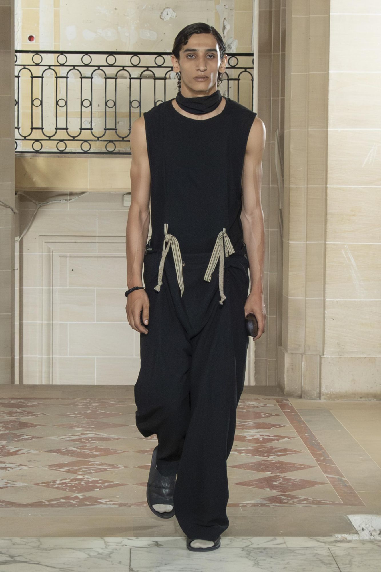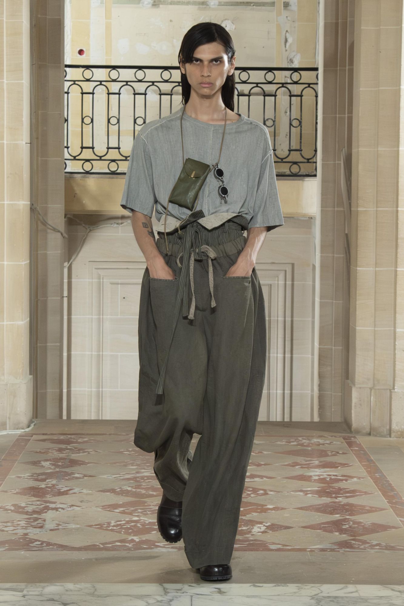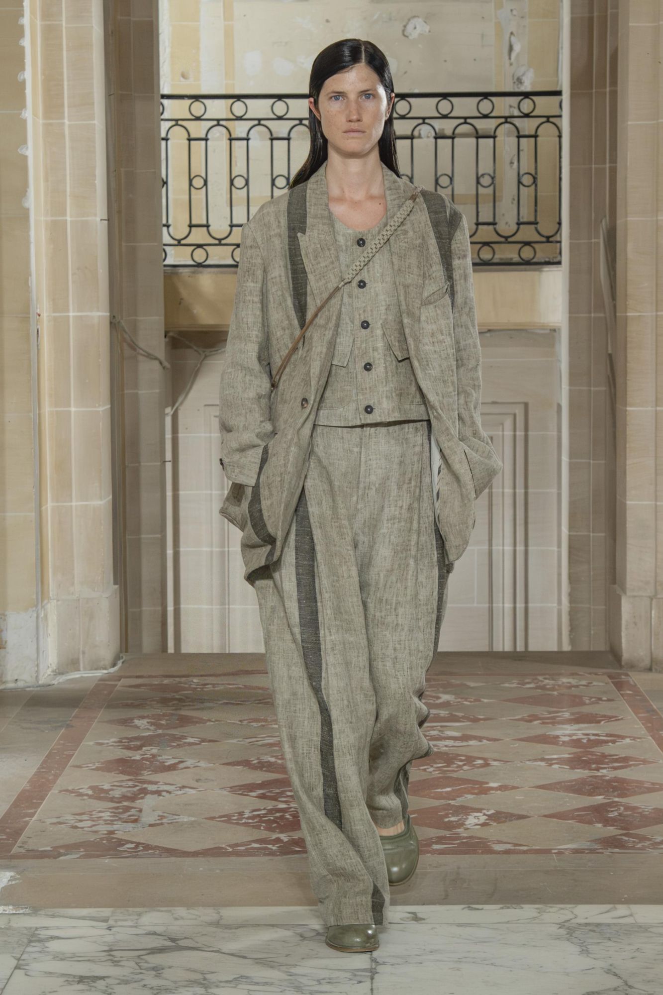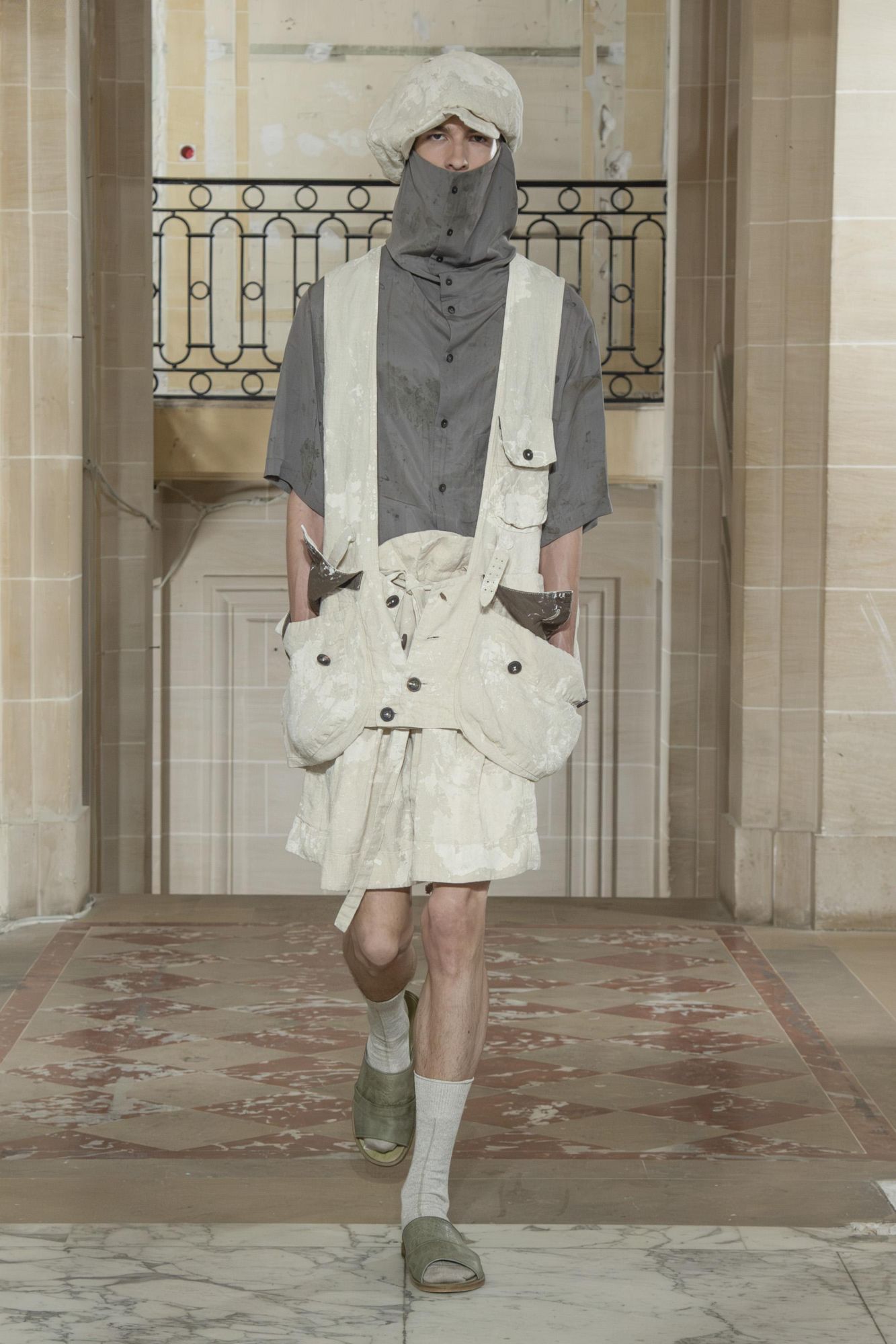 Still, Chen’s hand remains unmistakable. Although asymmetry takes a backseat this season, experimentation surfaces elsewhere, most notably in the use of hemp ropes and webbing, utilitarian details that lend the garments a tactile honesty. “Each season, we incorporate treatments unique to that moment,” he says. “Asymmetry and unconventional cuts aren’t something we pursue every season.”
