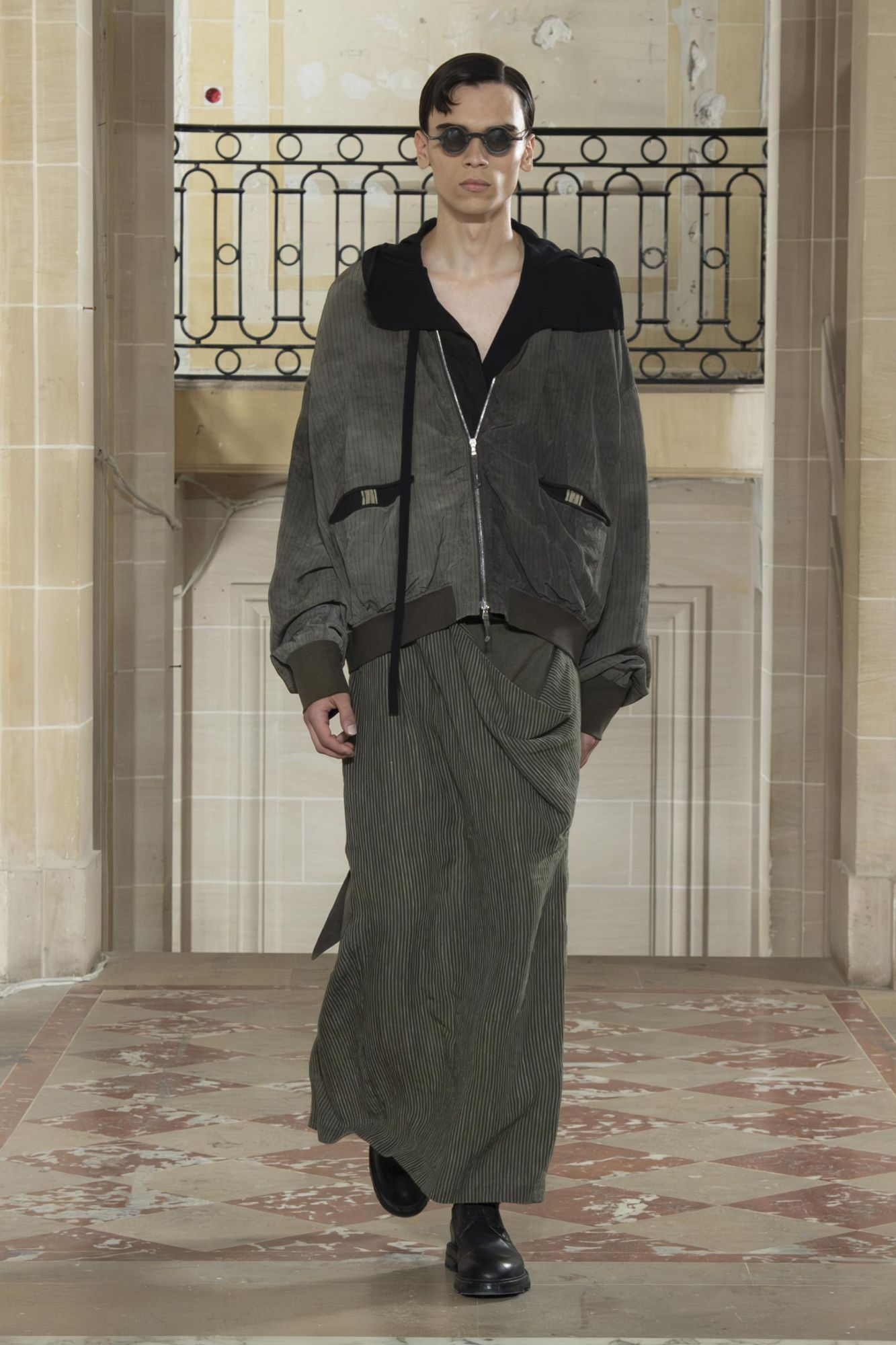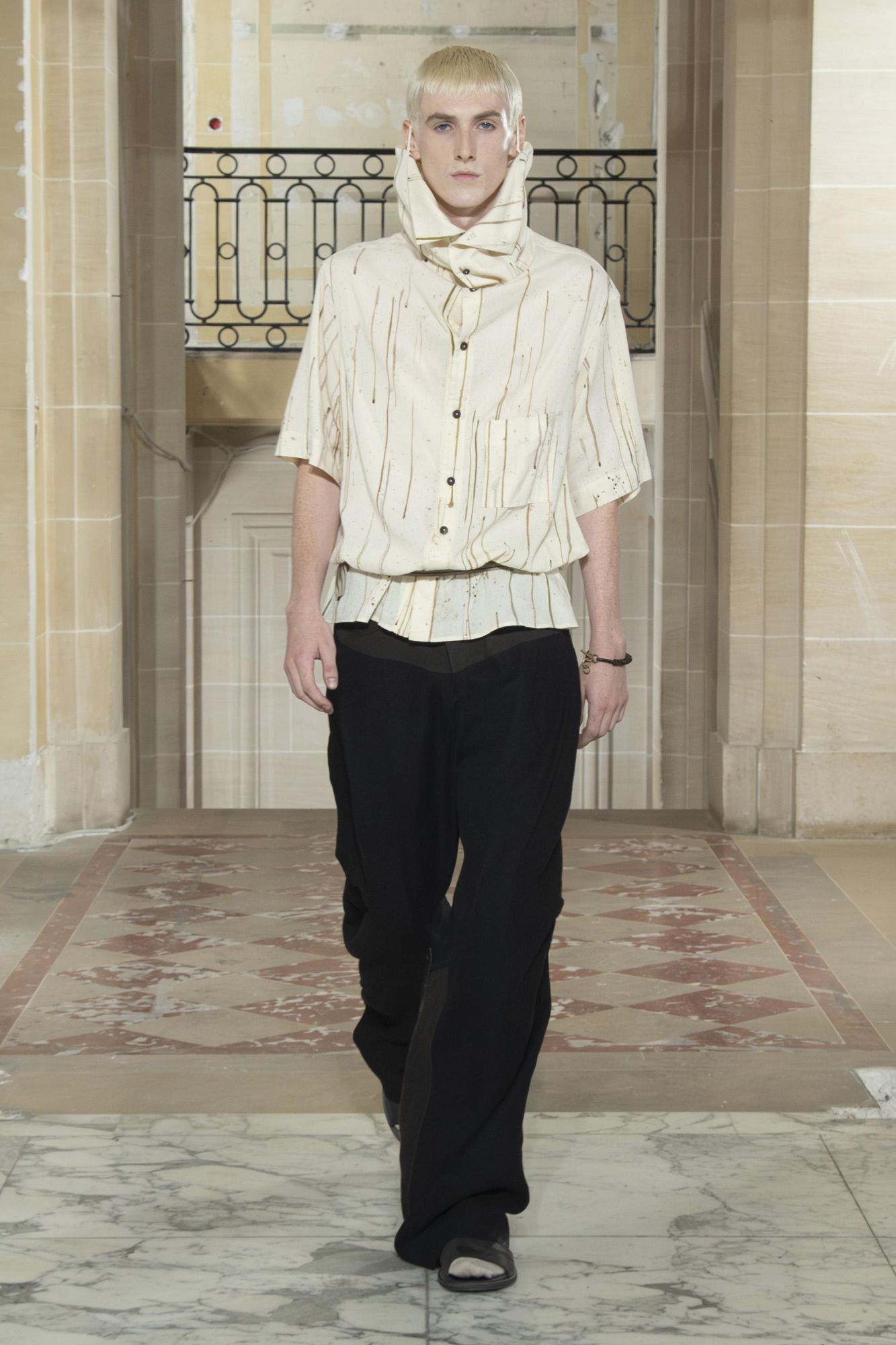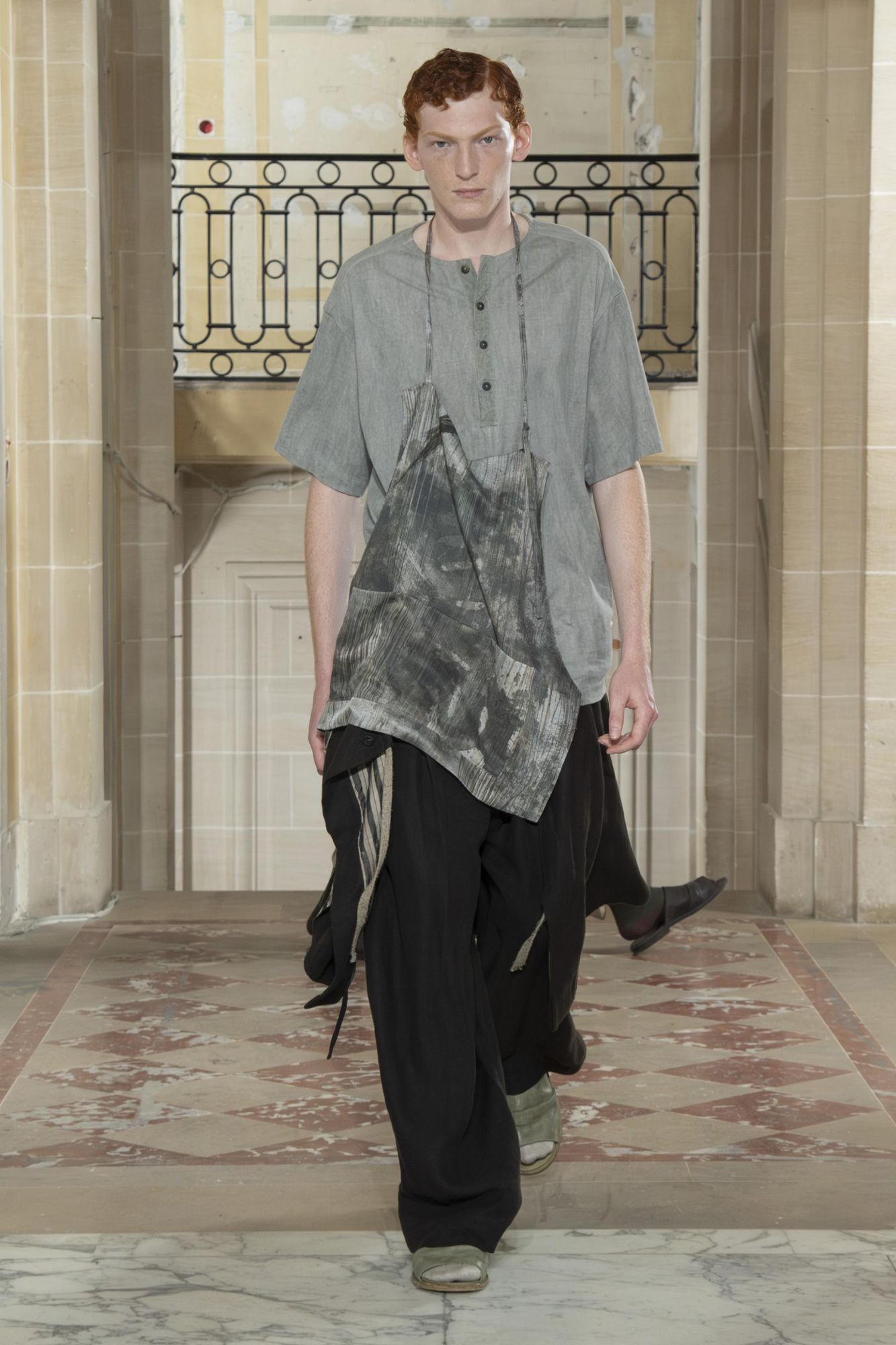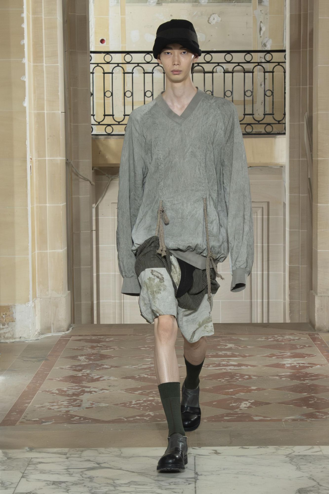 Still, Chen’s hand remains unmistakable. Although asymmetry takes a backseat this season, experimentation surfaces elsewhere, most notably in the use of hemp ropes and webbing, utilitarian details that lend the garments a tactile honesty. “Each season, we incorporate treatments unique to that moment,” he says. “Asymmetry and unconventional cuts aren’t something we pursue every season.”