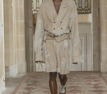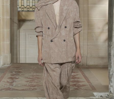 For those who haven’t yet discovered Chen, the Shanghai-born designer is a radical force in modern menswear, celebrated for his masterful layering and a nuanced aesthetic that fuses the organic with the architectural. His clothes wear like second skin, they’re lived-in, familiar, yet rigorously crafted. With PRITRIKE, Chen explores an elemental theme: the primal power of nature, distilled through fabric and form into garments that feel both ancient and freshly vital.